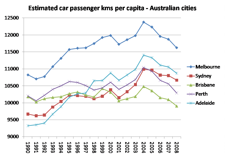 Car and transit use per capita in Australian cities (Peak Car) » car kms per capita
