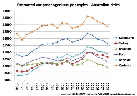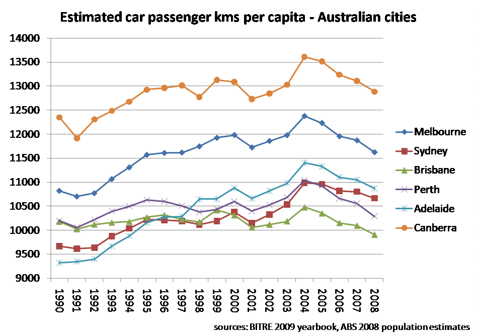Car and transit use per capita in Australian cities (Peak Car) » car kms per capita