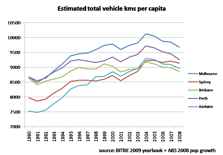 Car and transit use per capita in Australian cities (Peak Car) » tot kms per capita