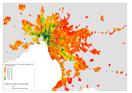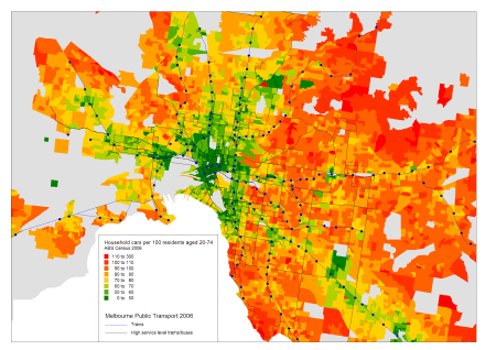 Note that this exercise does not aim to fully explain the reason for rates of car ownership in Melbourne. There is extensive literature available about this subject. We have primarily set out to highlight car ownership rates in Melbourne to inform debate.