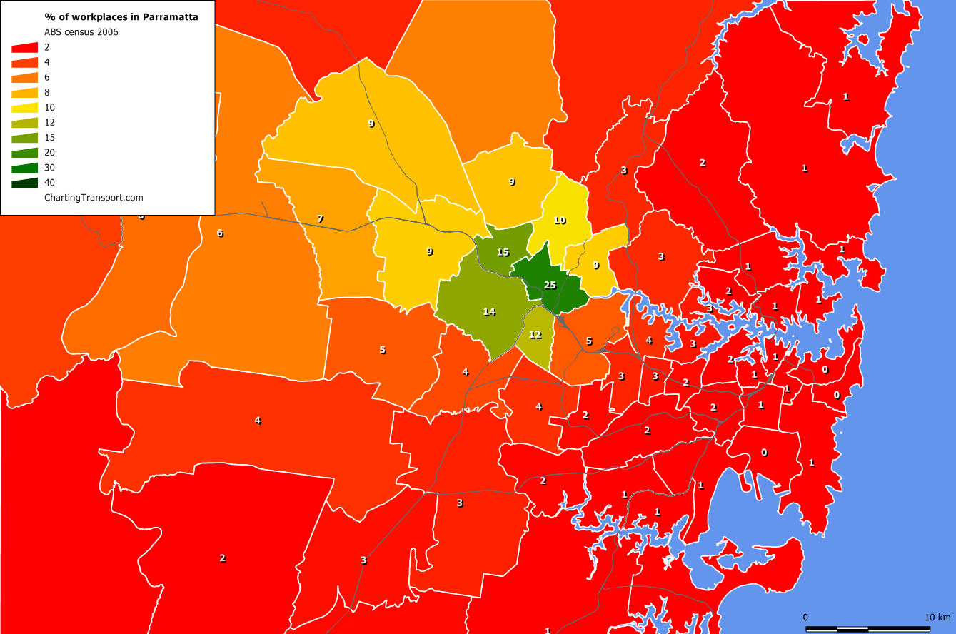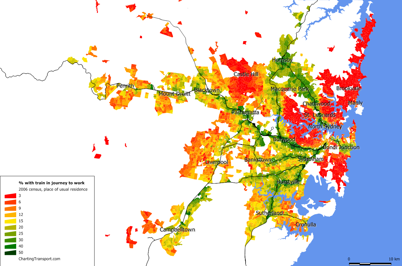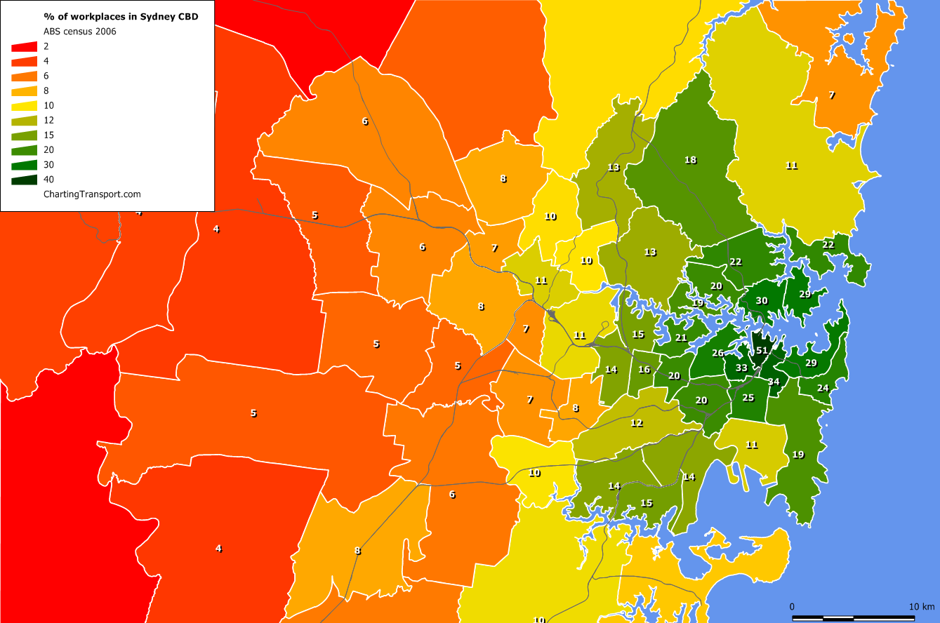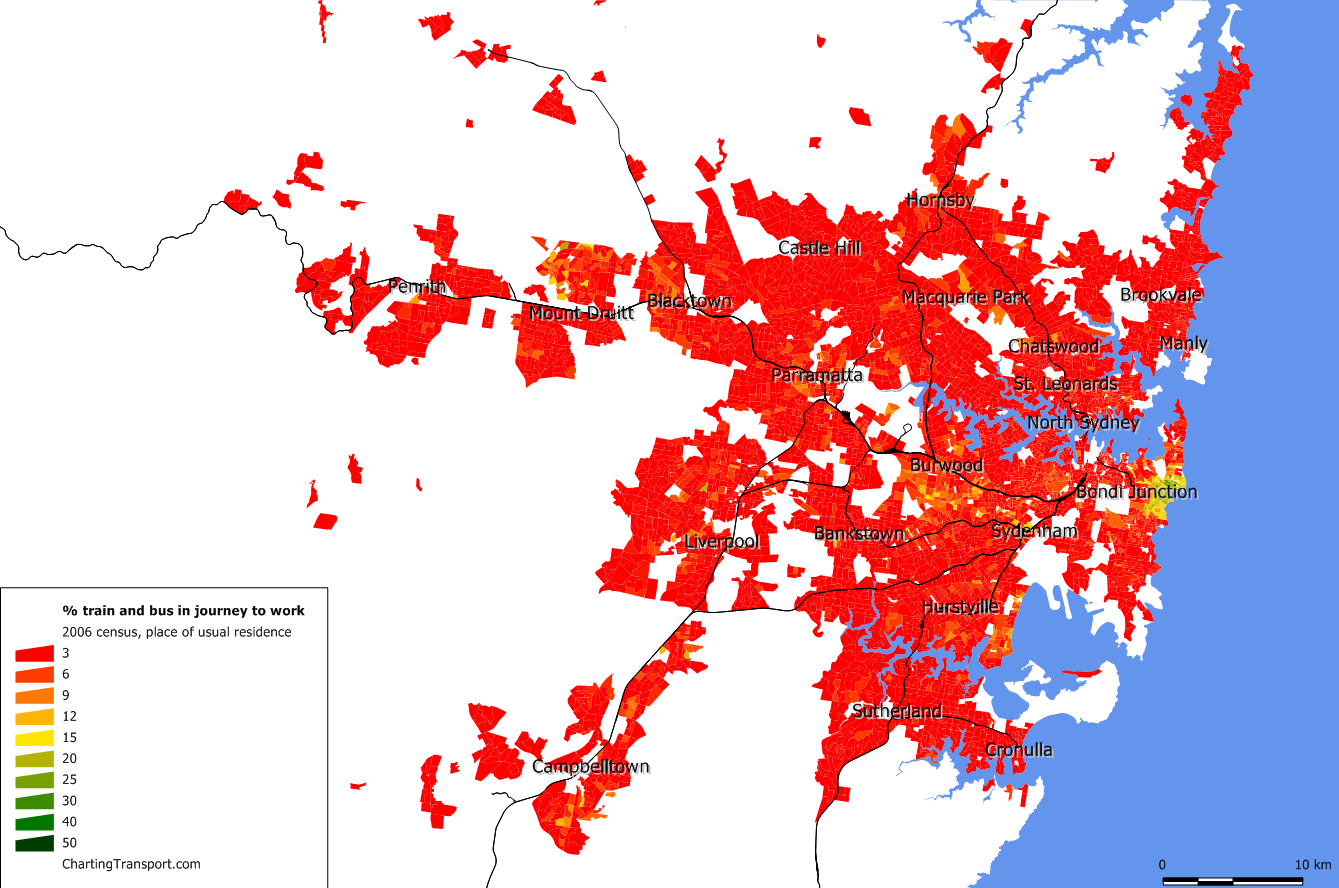 […] from various countries, then in more detail on Australian cities, and finally into great detail on just Sydney. Two maps looking at employment density and public transport use in Sydney most relevant to this […]