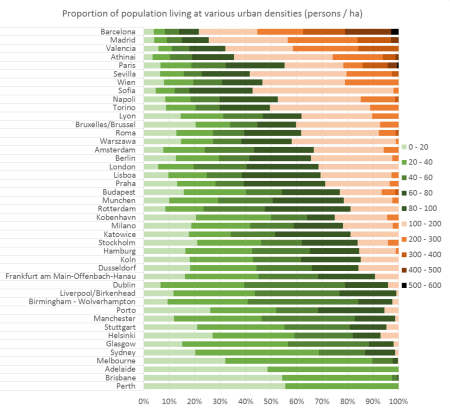 Comparing the densities of Australian, European, Canadian, and New Zealand cities » AU EU urban density distribution