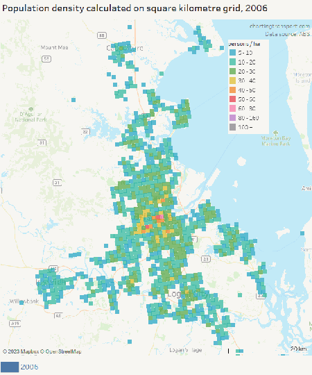 How is population density changing in Australian cities? (2023 update) » brisbane-sq-km-density
