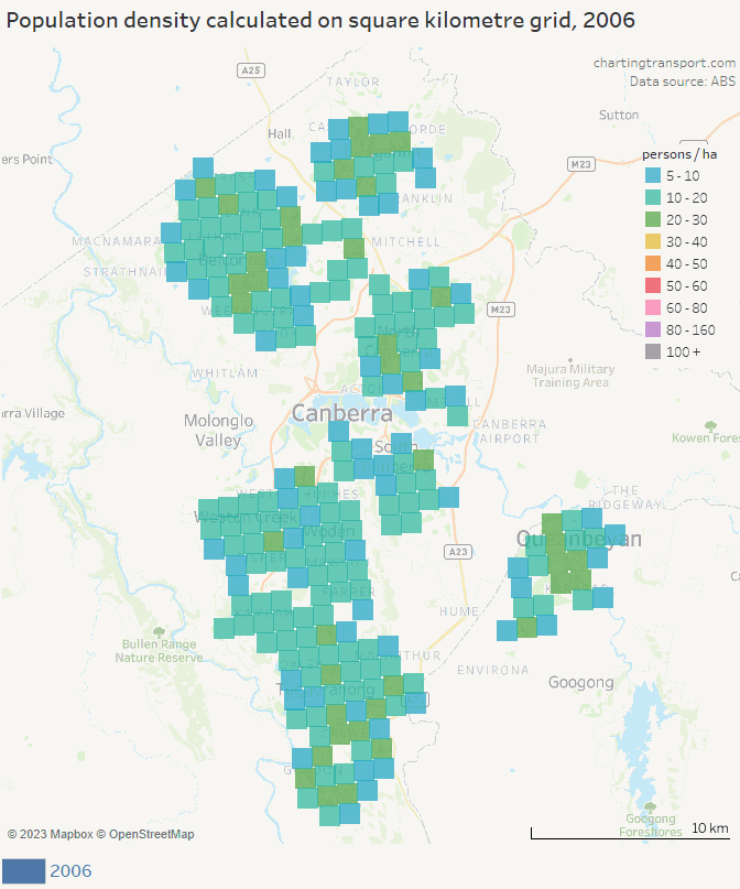 How is population density changing in Australian cities? (2023 update) » canberra-sq-km-density