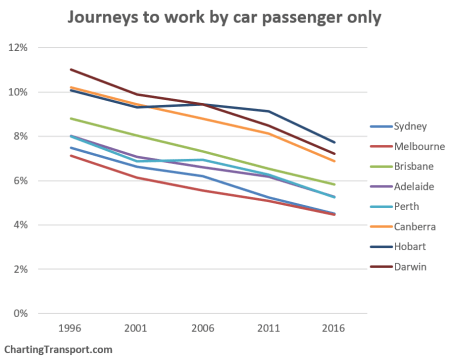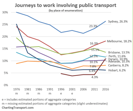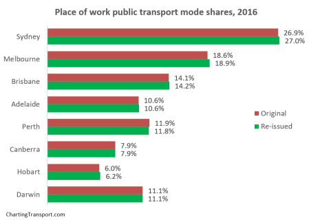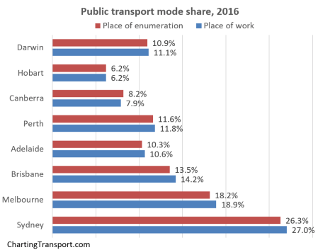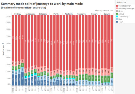 I have previously also analysed public transport mode share by age and family position. I’ve reproduced that analysis here:
