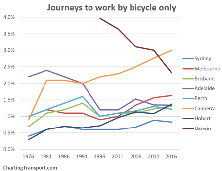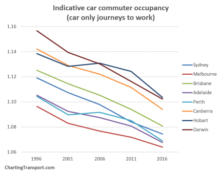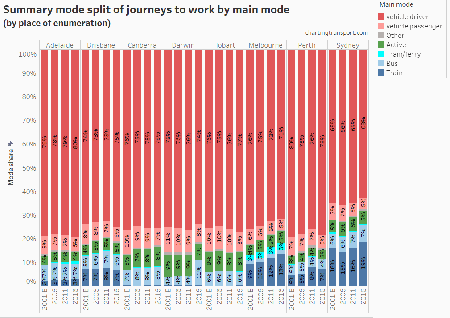 In some sections I’ve also used ABS Census data from 2016 and 2021. This data is segmented slightly differently, with parenting being indicated by whether the person does unpaid work to care for their own children (so might exclude parents with relatively independent adult children living with them). Unless noted otherwise, it includes people aged 15+, and journey to work data only includes those who travelled to work and reported their travel modes.