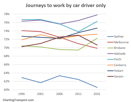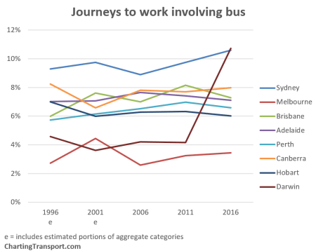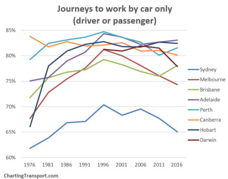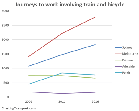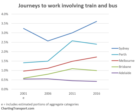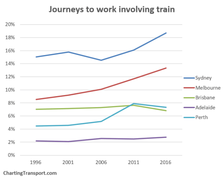 I think the lower availability of family-friendly housing near rapid public transport is quite likely to be contributing to lower public transport mode shares for parents, particularly as there is a clear relationship between public transport use and proximity to rapid transit stations (see: Are Australian cities growing around their rapid transit networks?)