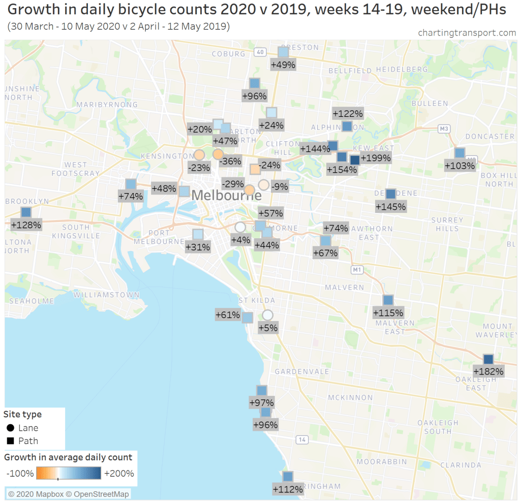 Note there is a very different Y-axis scale for City of Melbourne and elsewhere.