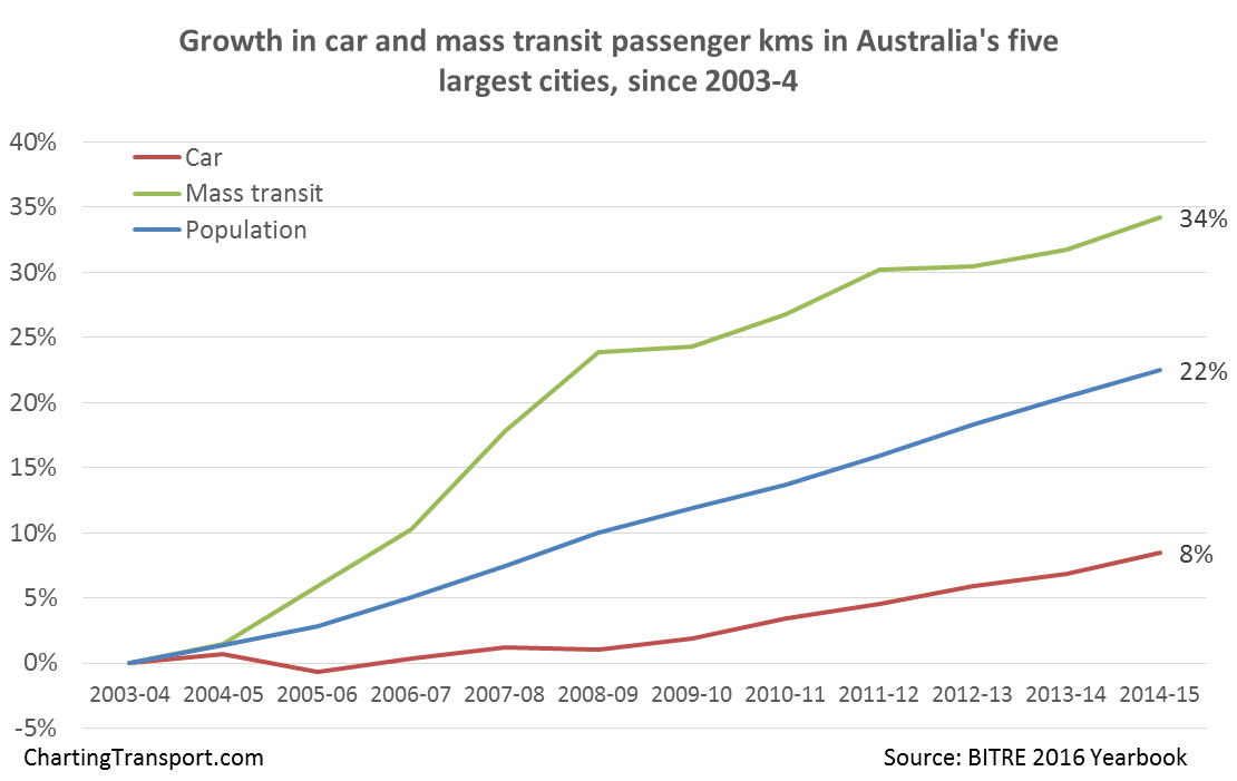 And public transport mode shares are related to both motor vehicle ownership rates and population density (with motor vehicle ownership probably being the stronger factor):