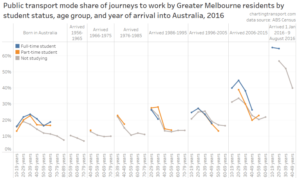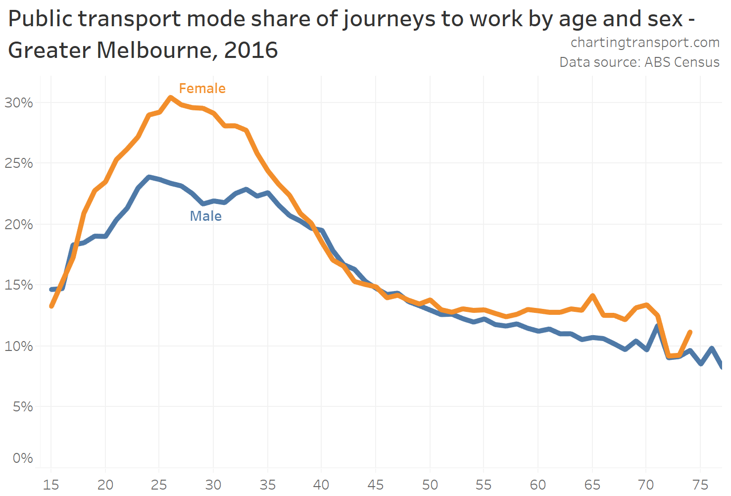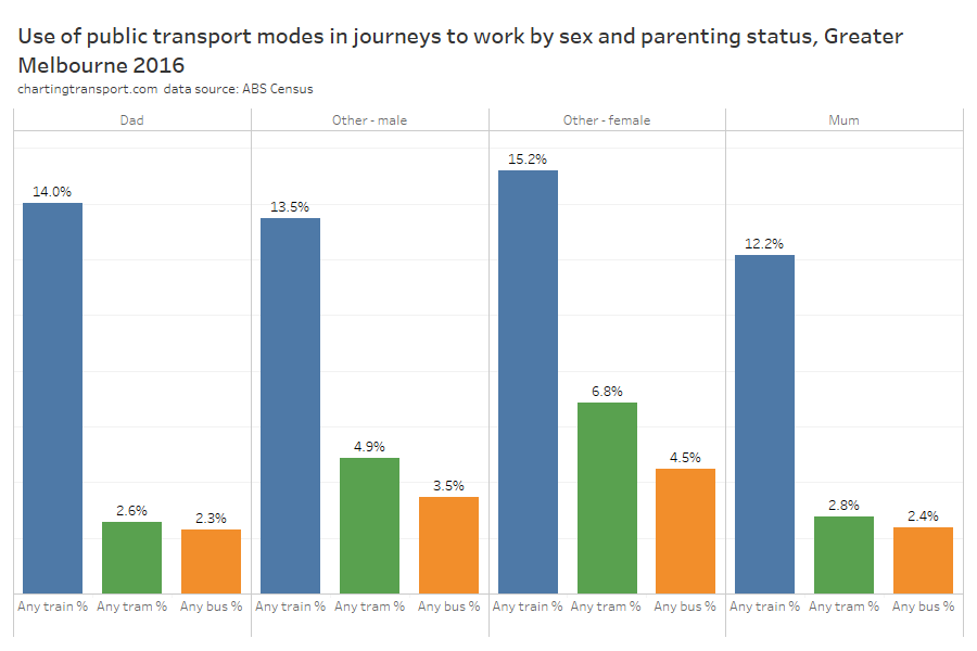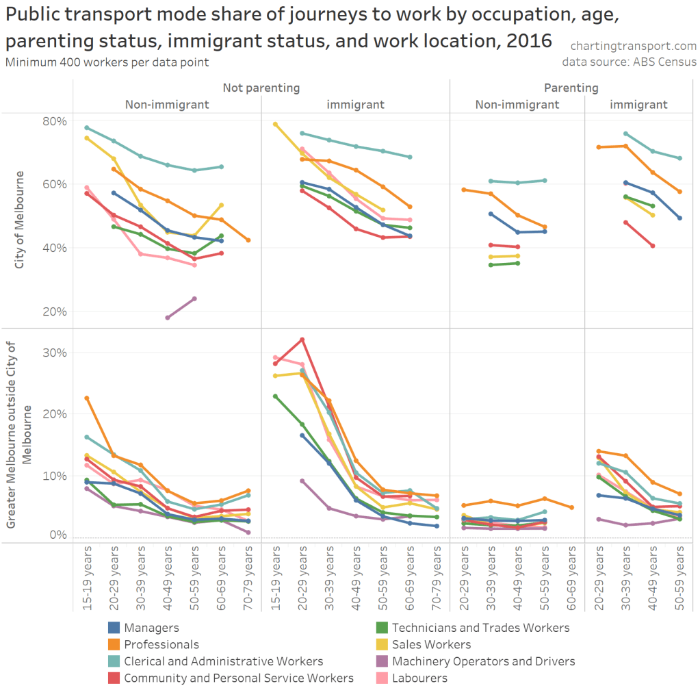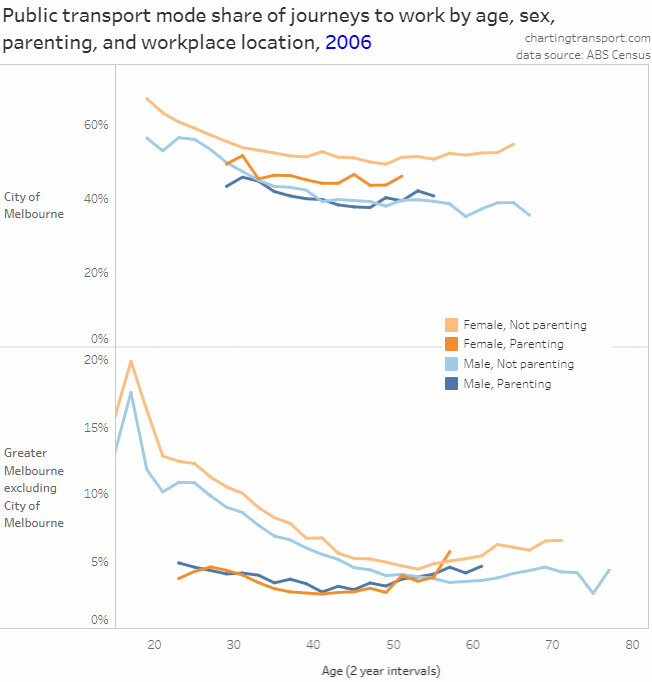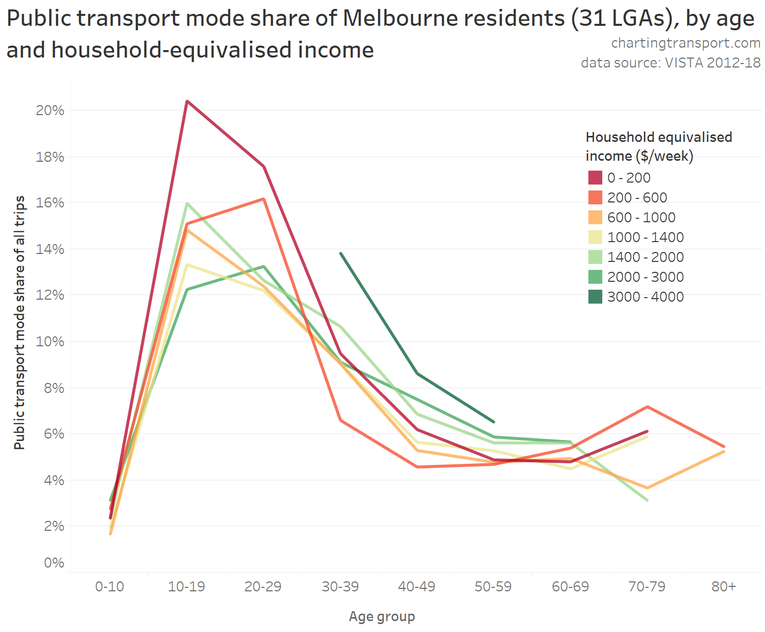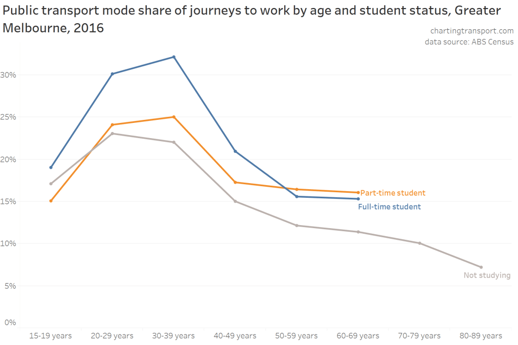 - There’s only so much you can do in the most socio-economically advantaged suburbs: Many cities have areas that are well served by rapid transit but still have high private transport mode shares. These tend to be some of the most advantaged suburbs, where many CBD workers are likely to be on high incomes and don’t wear the costs of private commuting. Shifting these commuters to public transport would probably require significant private transport disincentives.
