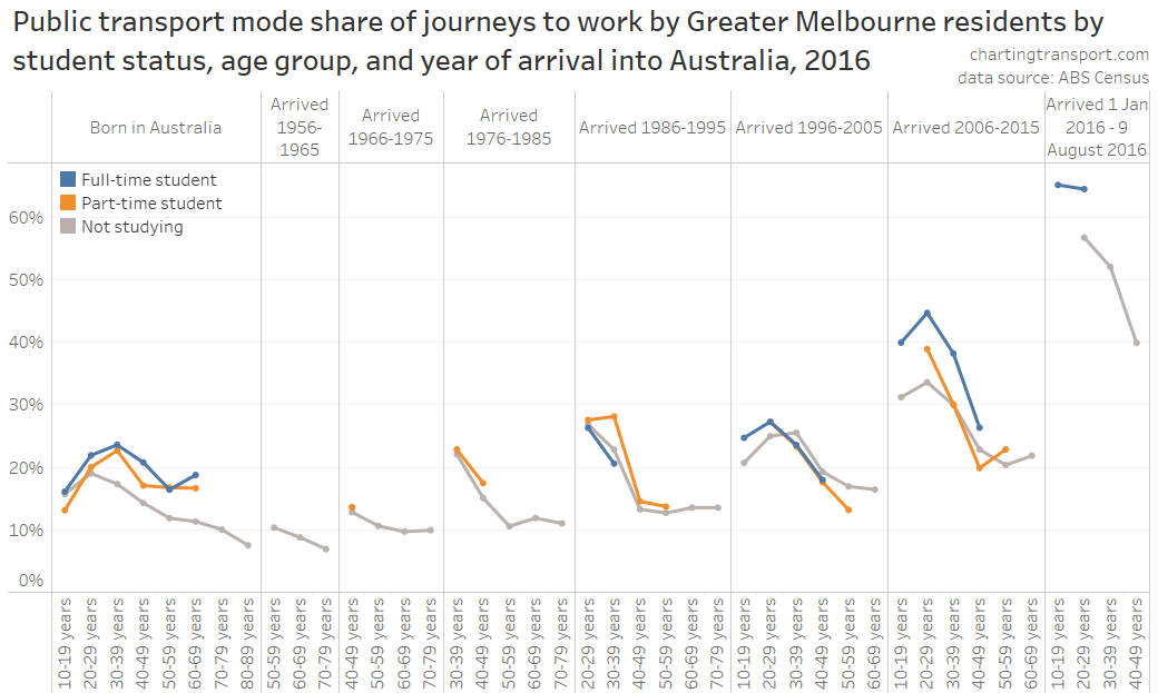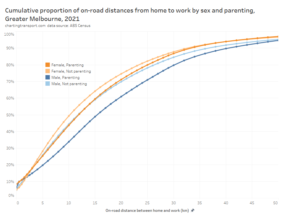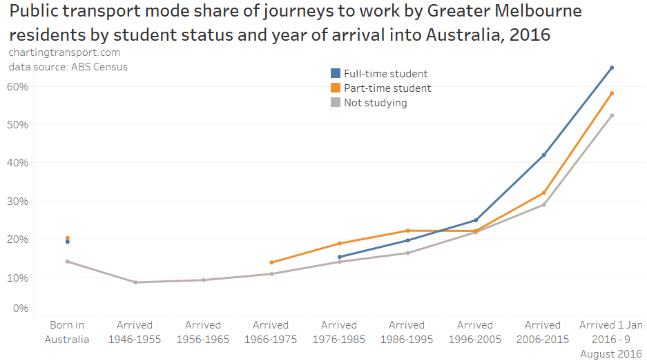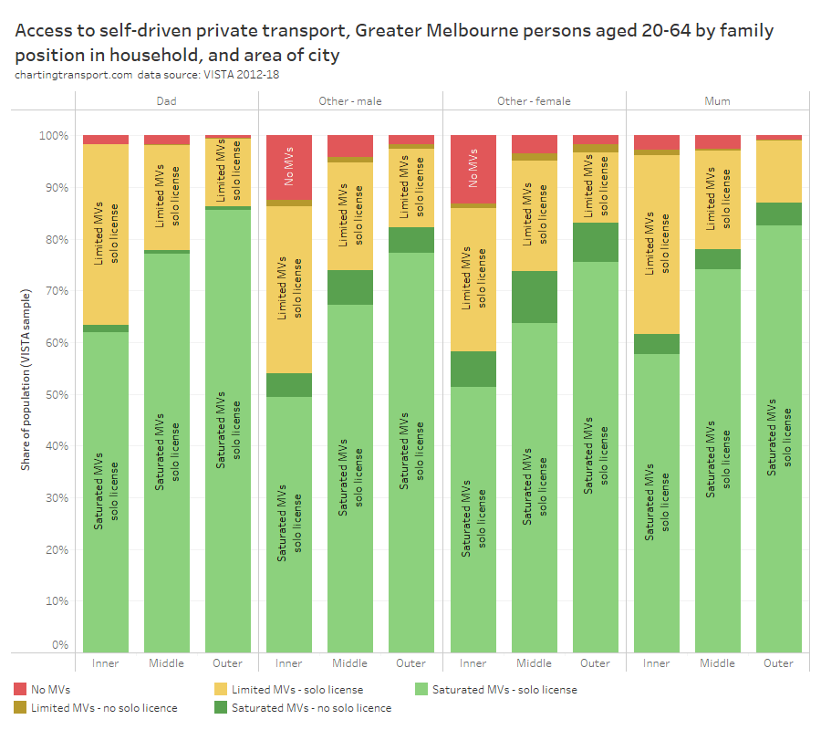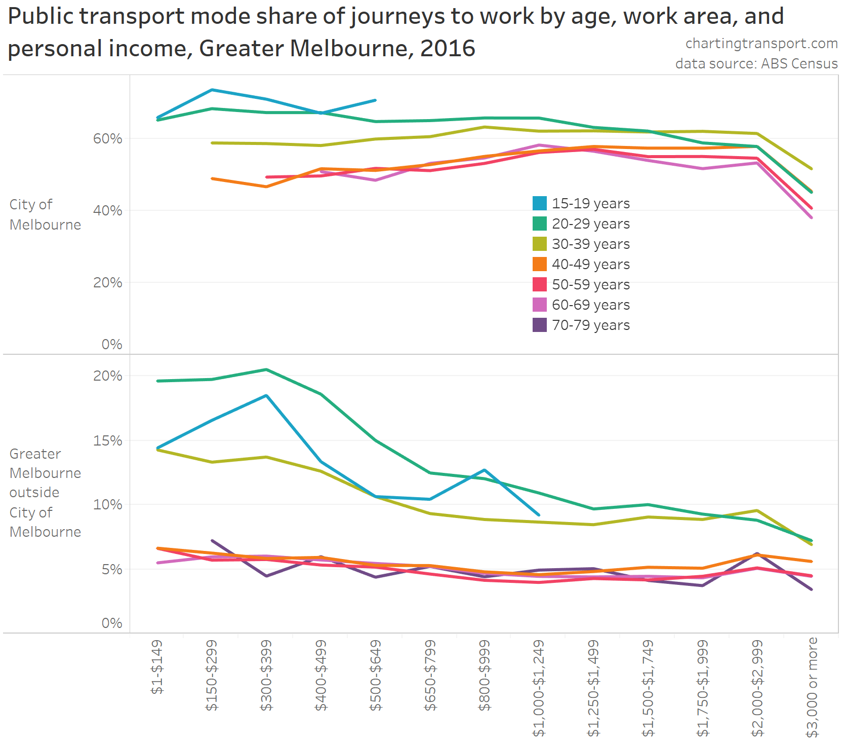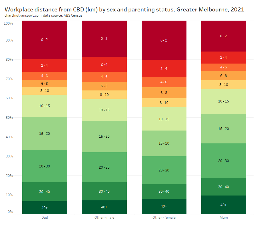 - There’s only so much you can do in the most socio-economically advantaged suburbs: Many cities have areas that are well served by rapid transit but still have high private transport mode shares. These tend to be some of the most advantaged suburbs, where many CBD workers are likely to be on high incomes and don’t wear the costs of private commuting. Shifting these commuters to public transport would probably require significant private transport disincentives.