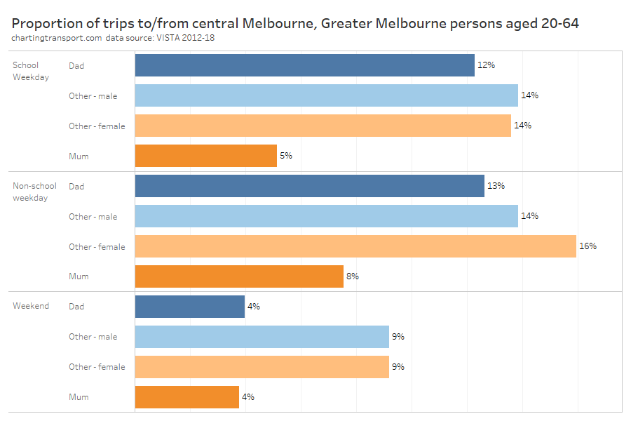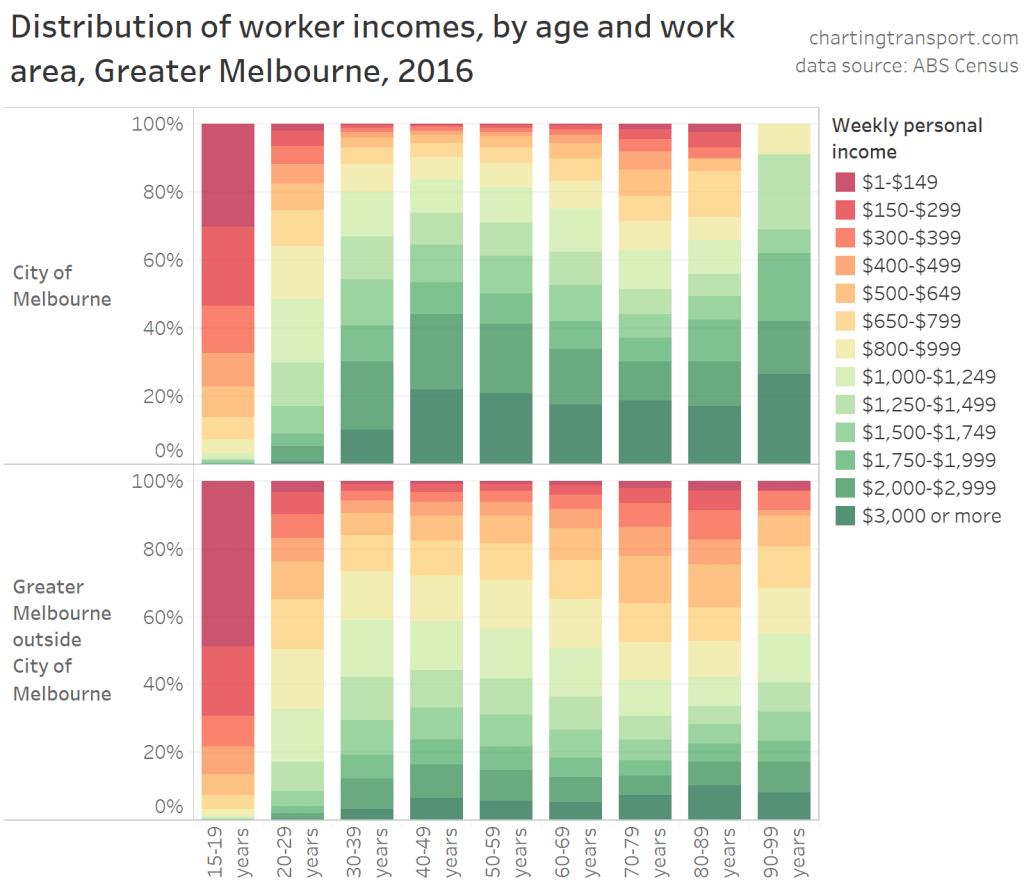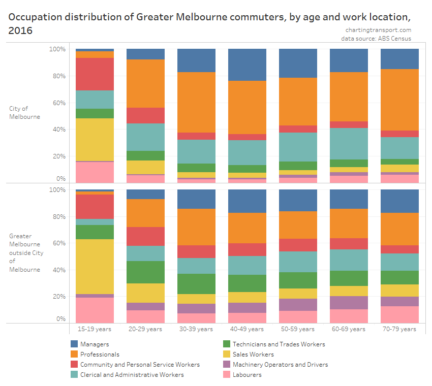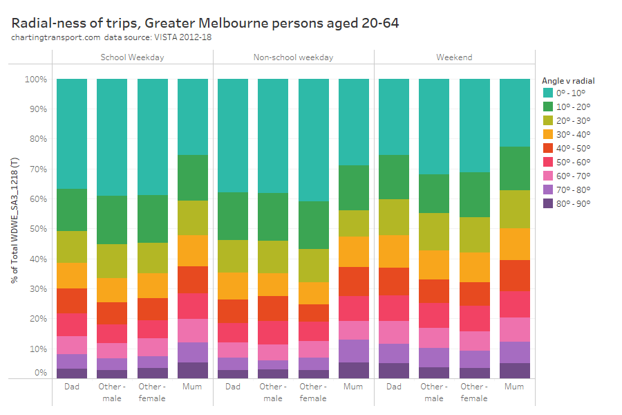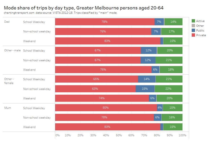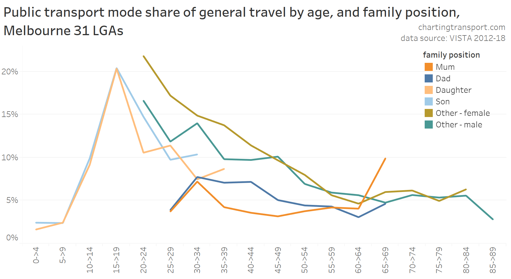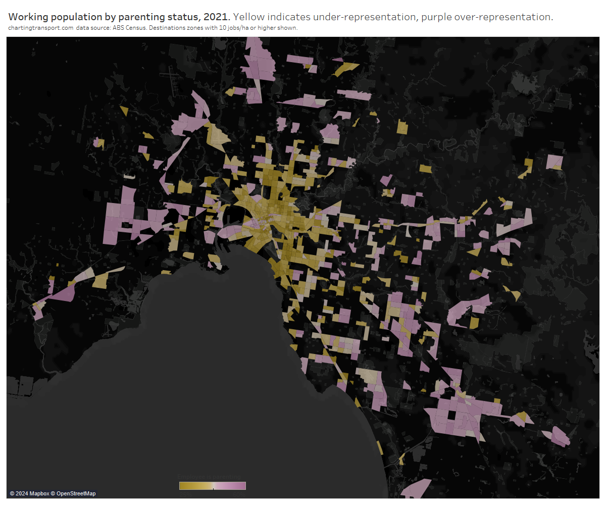 - There’s only so much you can do in the most socio-economically advantaged suburbs: Many cities have areas that are well served by rapid transit but still have high private transport mode shares. These tend to be some of the most advantaged suburbs, where many CBD workers are likely to be on high incomes and don’t wear the costs of private commuting. Shifting these commuters to public transport would probably require significant private transport disincentives.