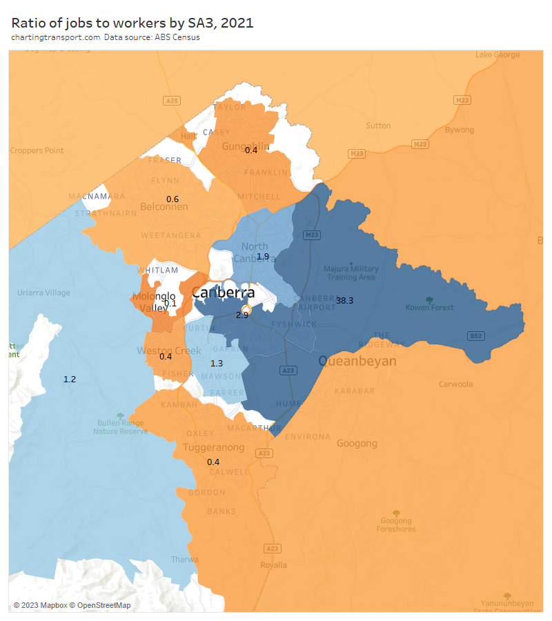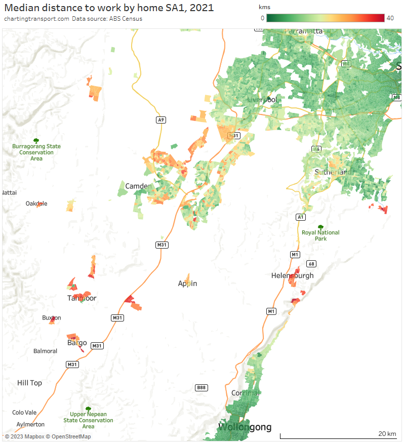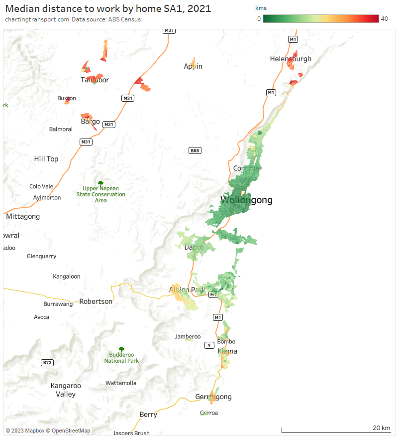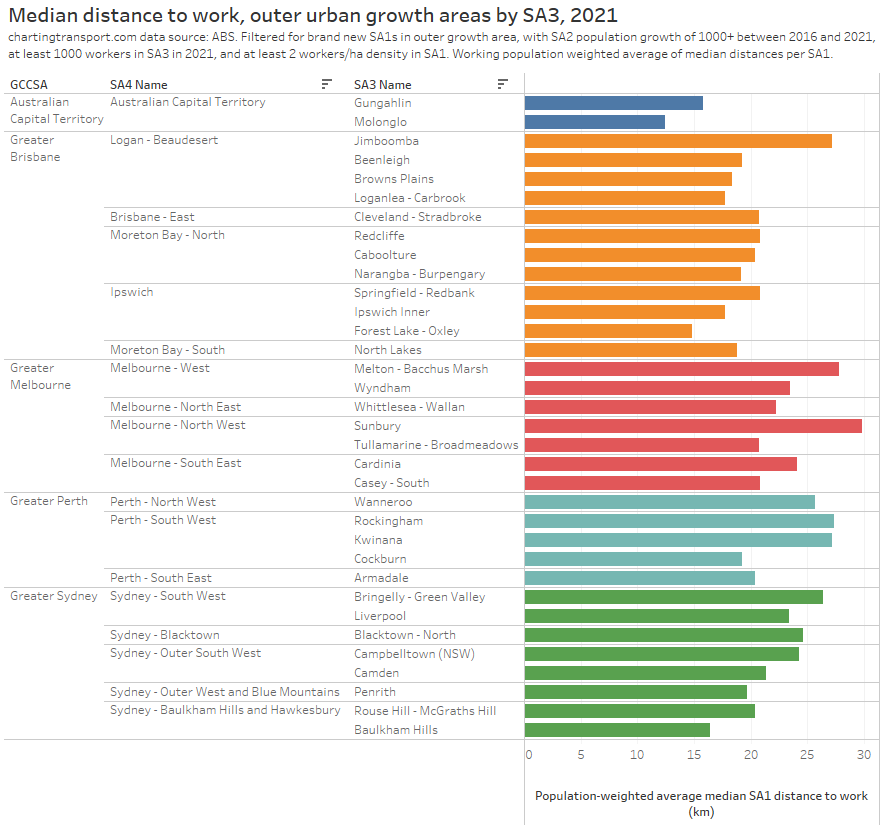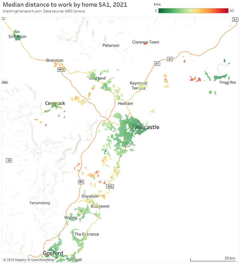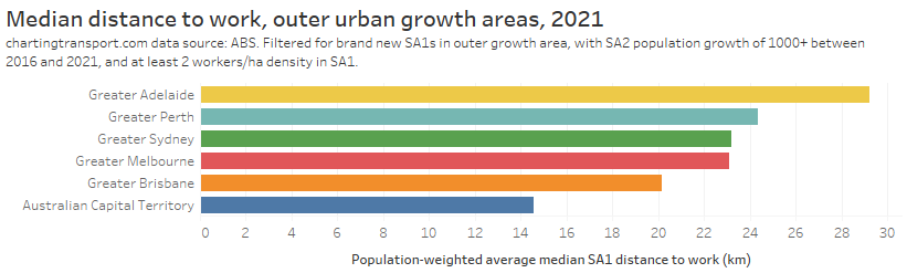 Note: Rottnest Island is included in the Fremantle SA2 but is unlikely to have had many Perth CBD commuters, so the colouring is probably misleading (same issue as Moreton Island).