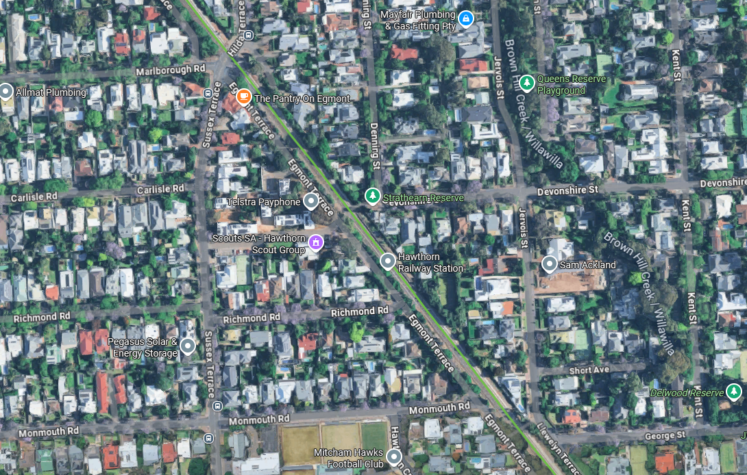 - some of the inner suburbs around the O-Bahn busway, which might be related to widely spaced stations in a river corridor (more on this below)