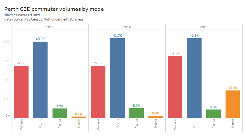 The COVID19 pandemic certainly caused some fluctuations in car passenger volumes in all cities for 2019-20 to 2021-22. In 2022-23, Sydney and Melbourne had not recovered to pre-pandemic levels, while Perth hit a new high.