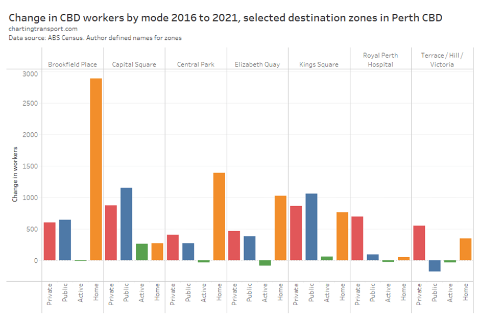 Mass transit mode shares obviously took a dive during the pandemic, but have since risen, although not back to 2019 levels – presumably at least partly because of working from home.