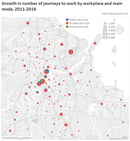 While this post hasn’t directly examined the impact of public transport investments on mode shares in specific places, I think it can inform the types of destinations where public transport investments might be more likely to deliver significant mode shifts.