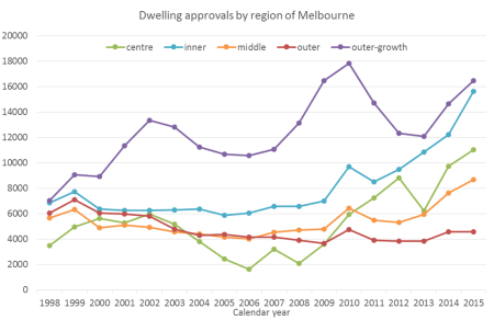 Note: I’ve used “city” as shorthand for the central area, and “inner” as shorthand for the inner suburban ring.