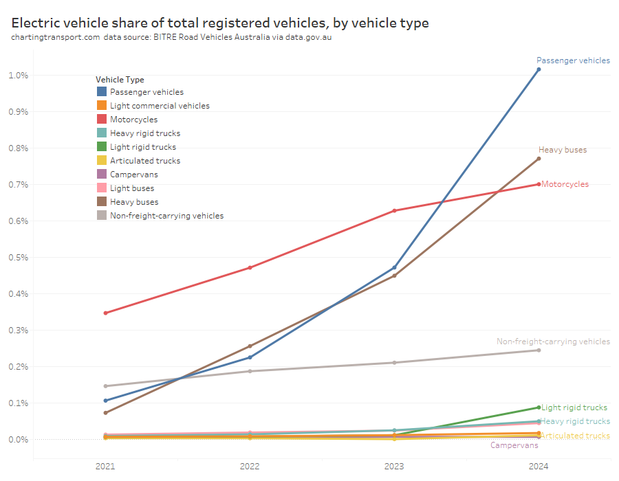 Australia is just starting to shift toward electric vehicles. How much of the fleet has shifted, and which vehicle types and geographies are shifting the fastest?