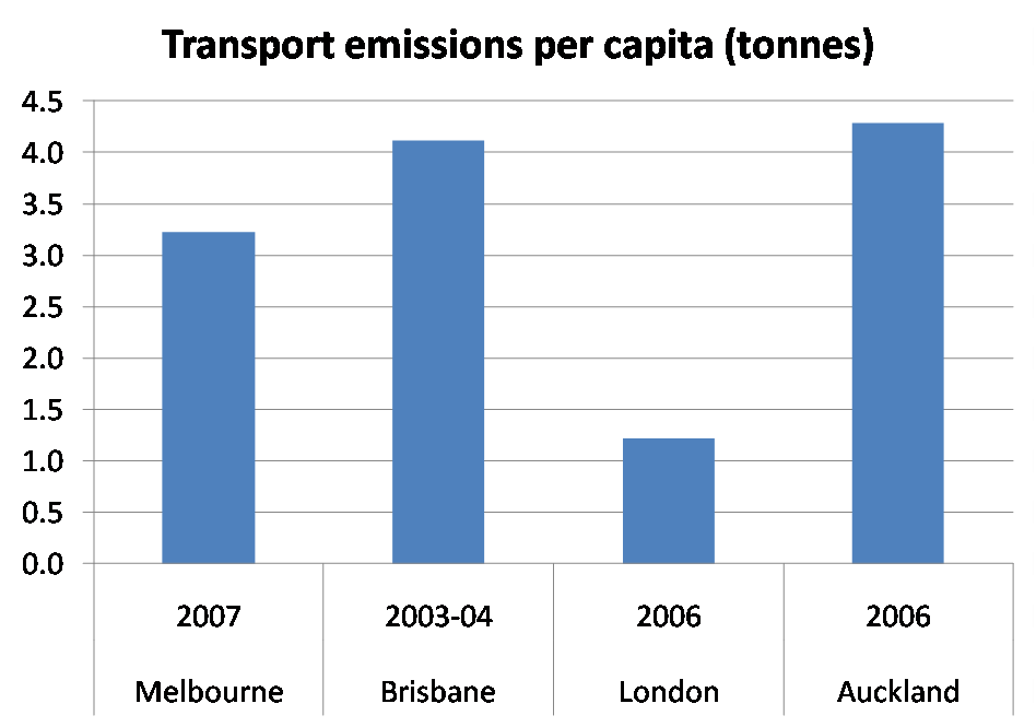 Higher population densities are commonly associated with higher public transport use. This stands to reason, as high density areas have more potential users per unit of area, but also higher density is likely to mean high land prices, which in turn increases the cost of residential parking. But higher public transport mode share can only happen if government’s invest in higher service levels, and this isn’t guaranteed to happen (although it often does, through pressures of overcrowding).