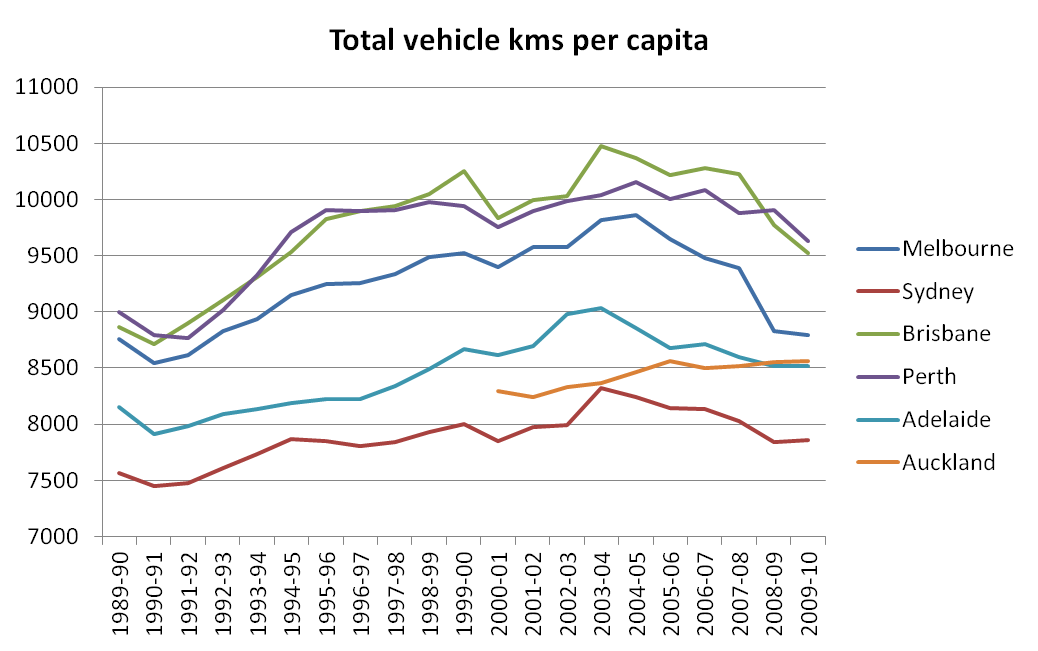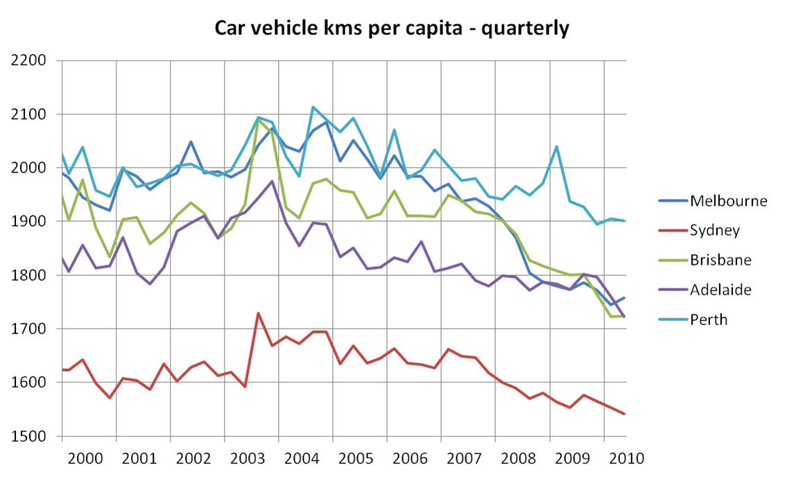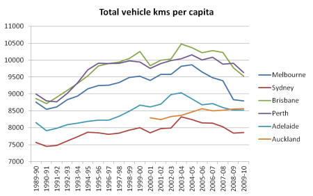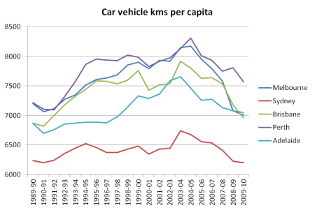 Sydney and Melbourne have seen the largest mode shift away from private transport, but only Melbourne has also seen declining motor vehicle ownership rates.