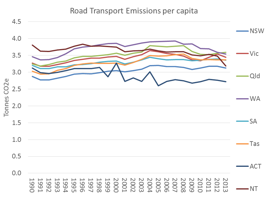 Canberra saw only weak growth in motor vehicle ownership between 2011 and 2016, and at the same time there was a shift away from private transport (and a large increase in population weighted density).