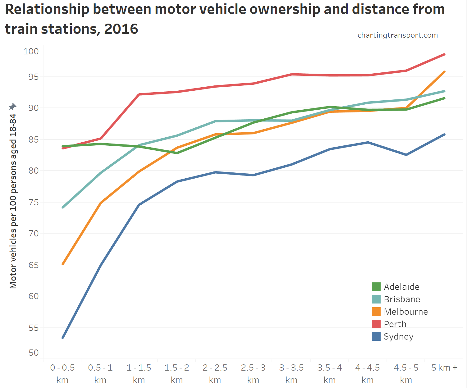 Motor vehicle ownership is related to home distance from train stations, except in Adelaide: