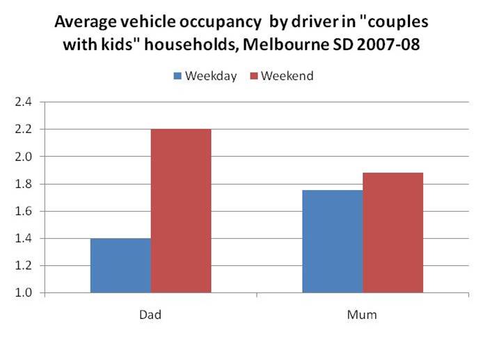 There you go: dads much more likely to drive the family around on weekends, and mums more likely to drive them around on weekdays. And while on the subject…