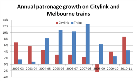 To take a closer look at the two growth rates, here are financial year growth rates on CityLink and trains: