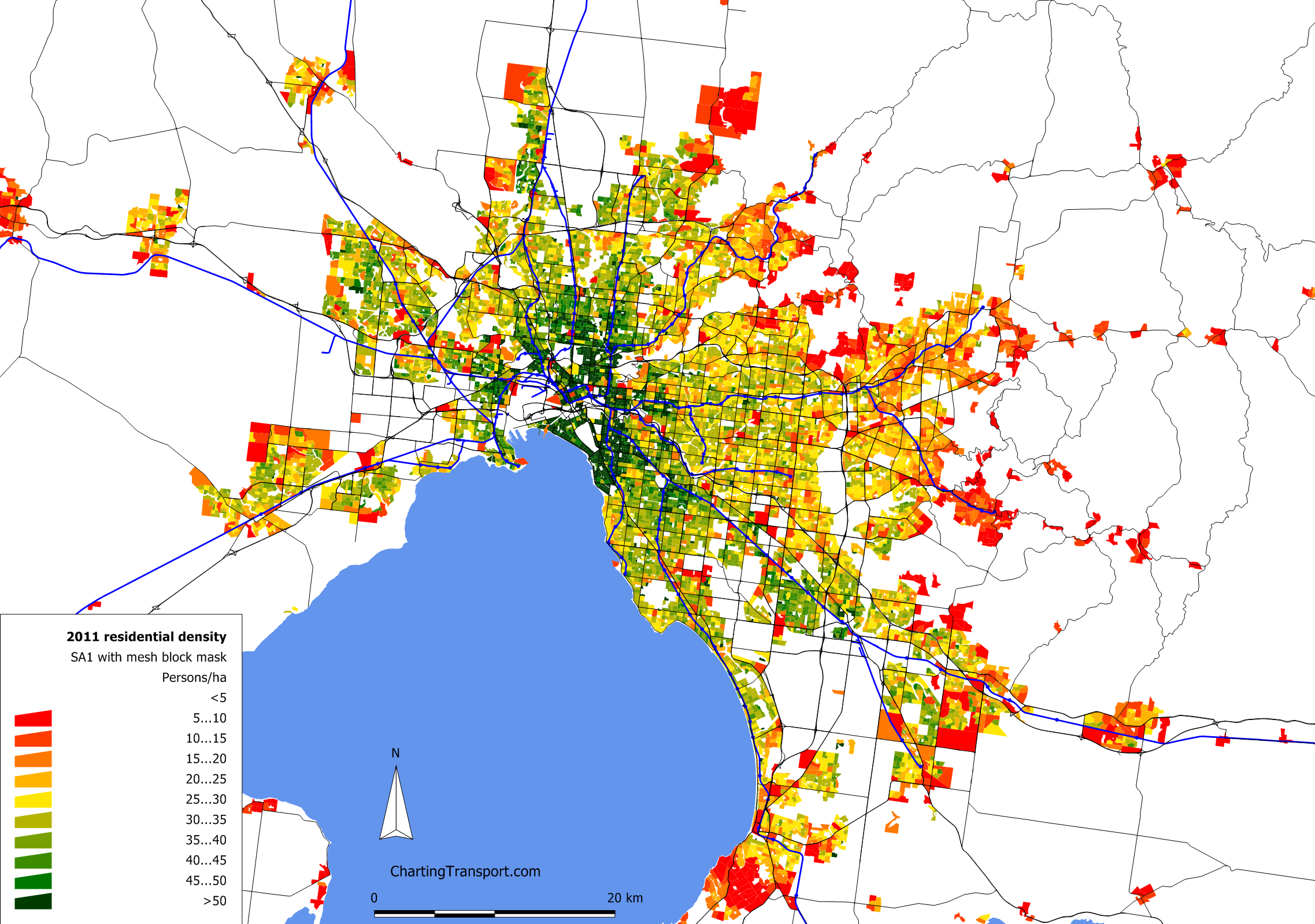 Data is readily available on journey to work by home census collection district, however this is by place of usual residence. Ideally mode shares should be measured using place of enumeration (where people actually were on census night), but I haven’t forked out the $750 required to get access to ABS TableBuilder Pro which would provide that data. So the data I’m presenting is not ideal as some people would have been away from home on census morning and their modes of travel will be associated with their usual residence.