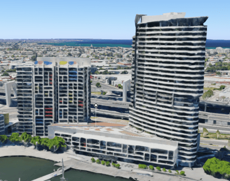 - 48% for an apartment tower at 555 Flinders Street (Northbank Place Central Tower) between Spencer and King Street and the railway viaduct. It wasn’t brand new in 2016.