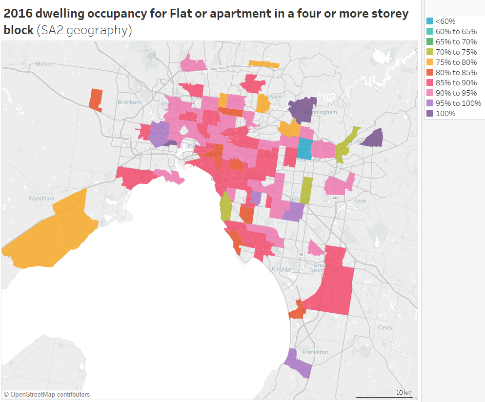 So how does the occupancy of apartment blocks of 4+ storeys vary across Melbourne?