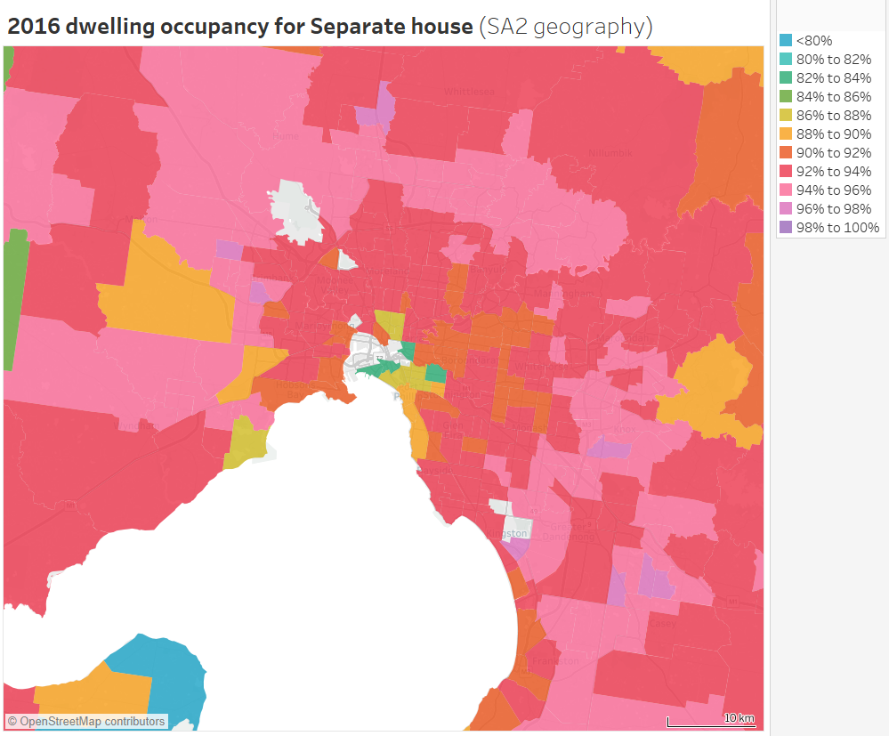 Here’s a similar map (with a different colour scale) for dwelling occupancy of separate houses across the Melbourne region: