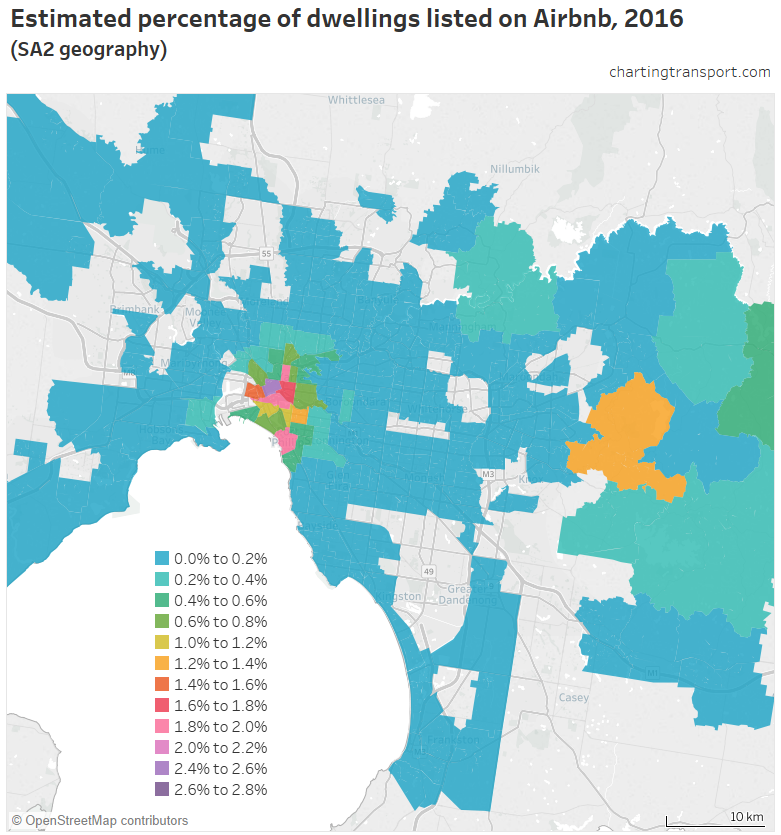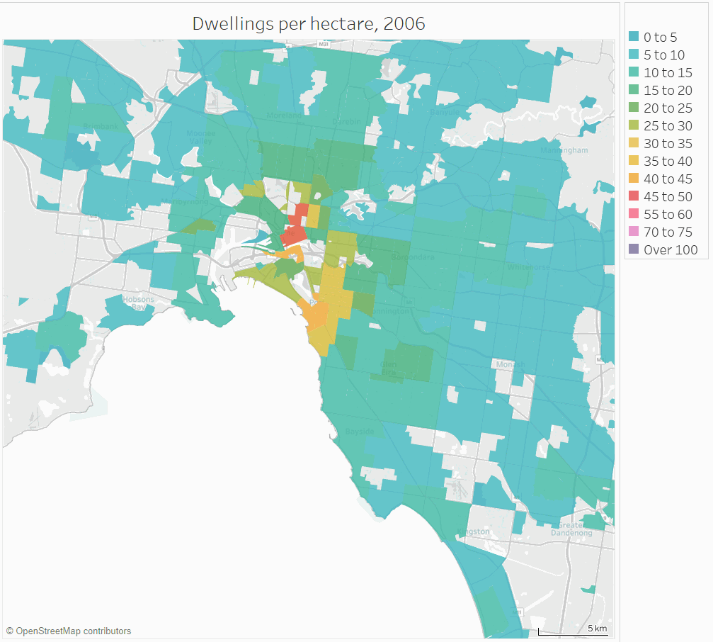 (I’ve not shaded SA2s with less than 1 unoccupied dwelling per hectare. You can look at other cities in Tableau by zooming out and then in on another city).
