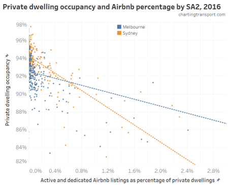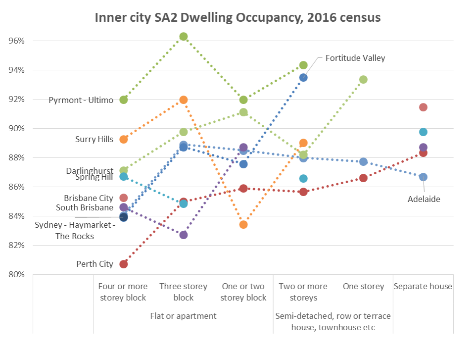 Here are occupancy rates for different dwelling types for selected inner city SA2s in Sydney, Brisbane, Adelaide and Perth: