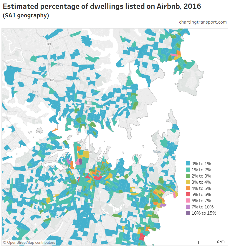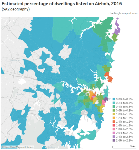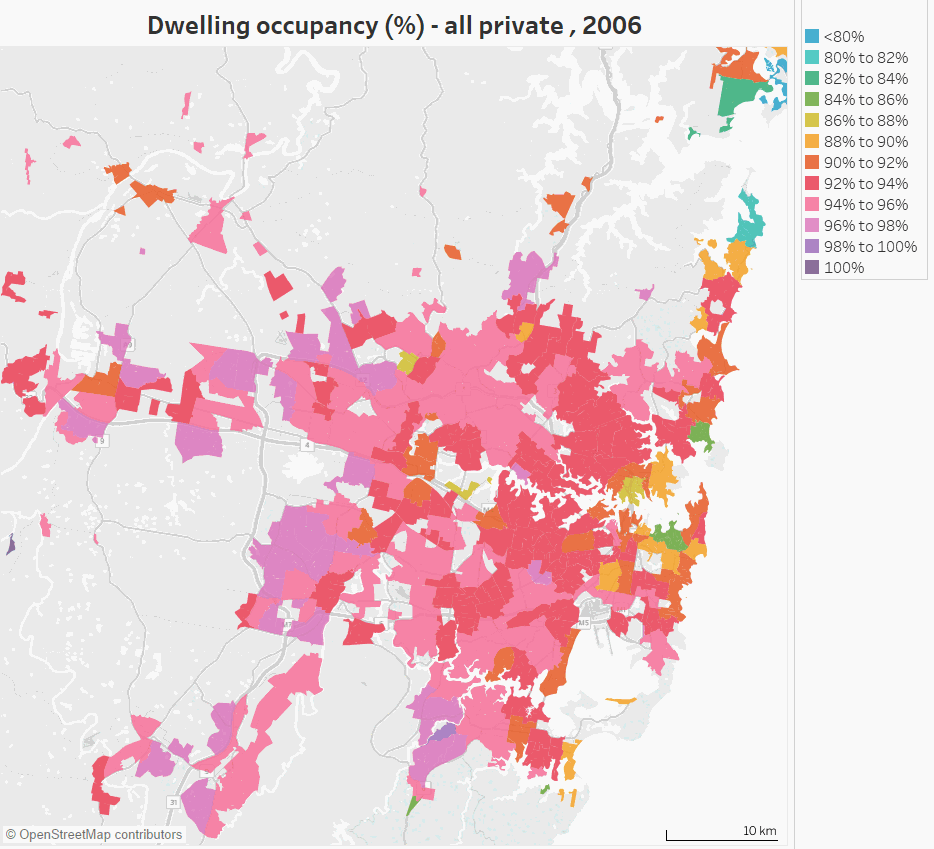 You can see lower occupancy around the CBD, North Sydney, Manly, and the northern beaches, and higher occupancy in the western suburbs.