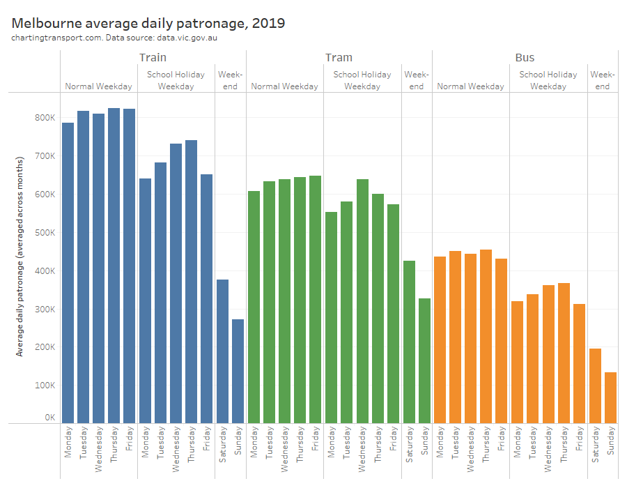 | Melbourne | Reported average patronage by day of the week and day type | High |