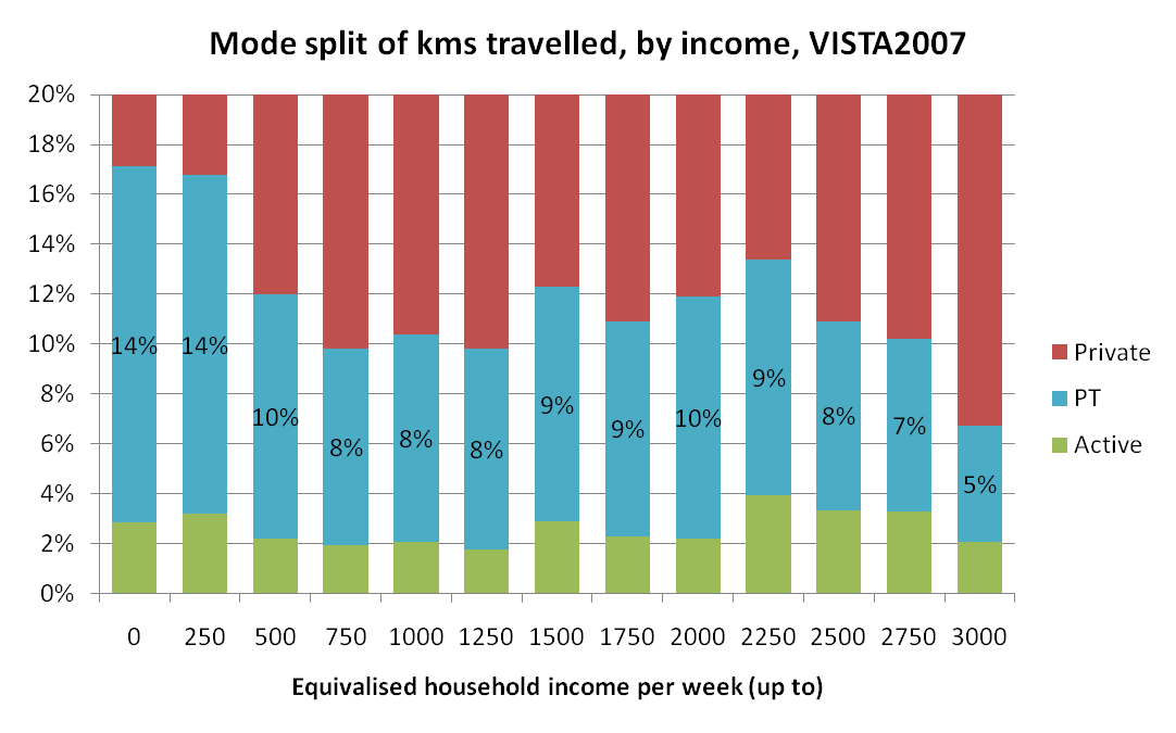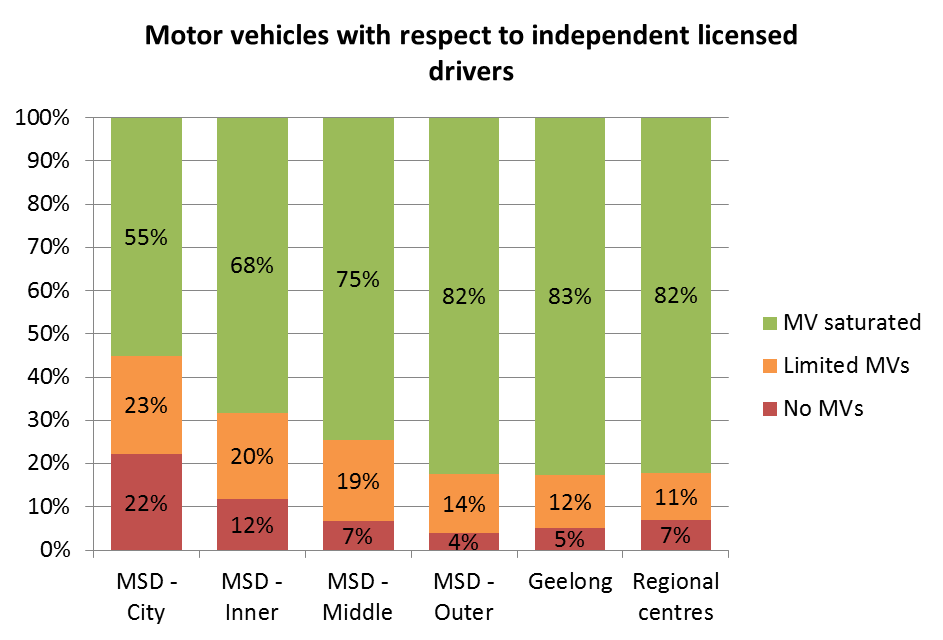 The VISTA data shows that 25% of households had limited or no motor vehicle ownership, and as you might expect it varies by geography, with higher rates of motor vehicle ownership in the outer suburbs.