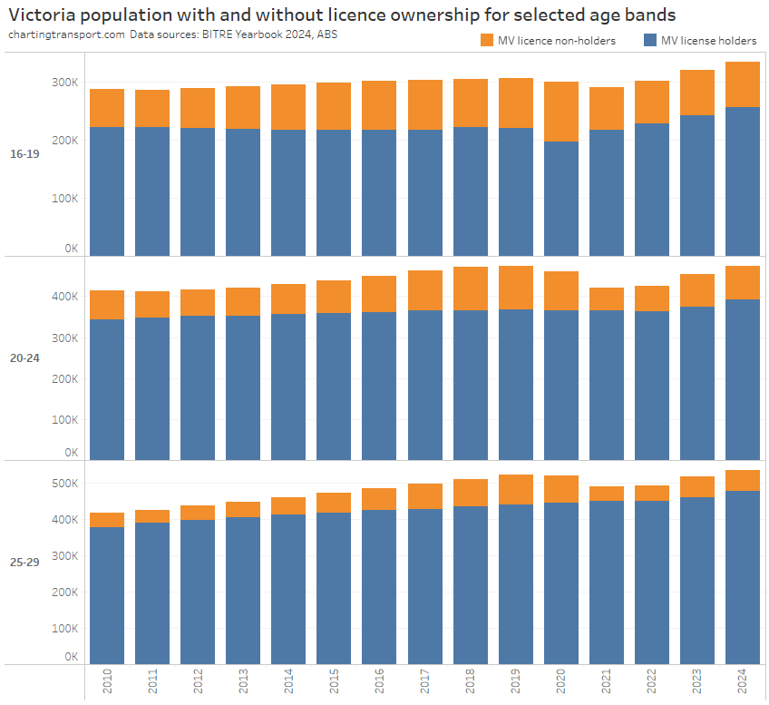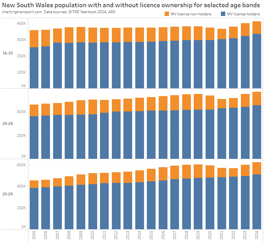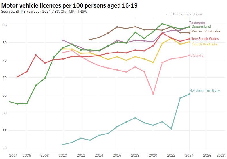 For less-recent (2015) but more detailed analysis, see the post Trends in driver’s licence ownership in Australia.