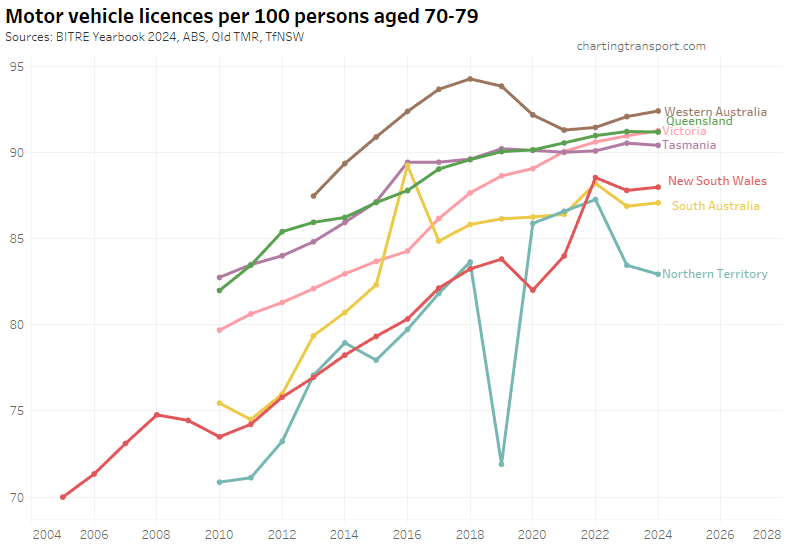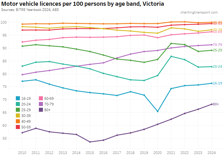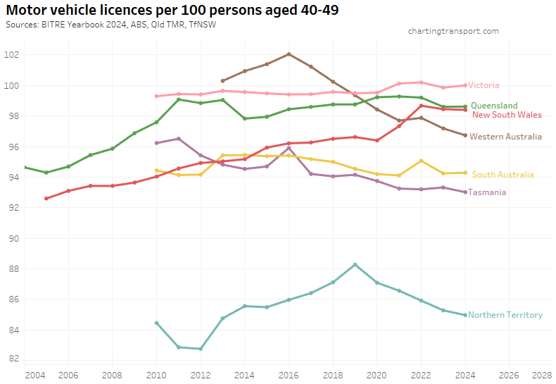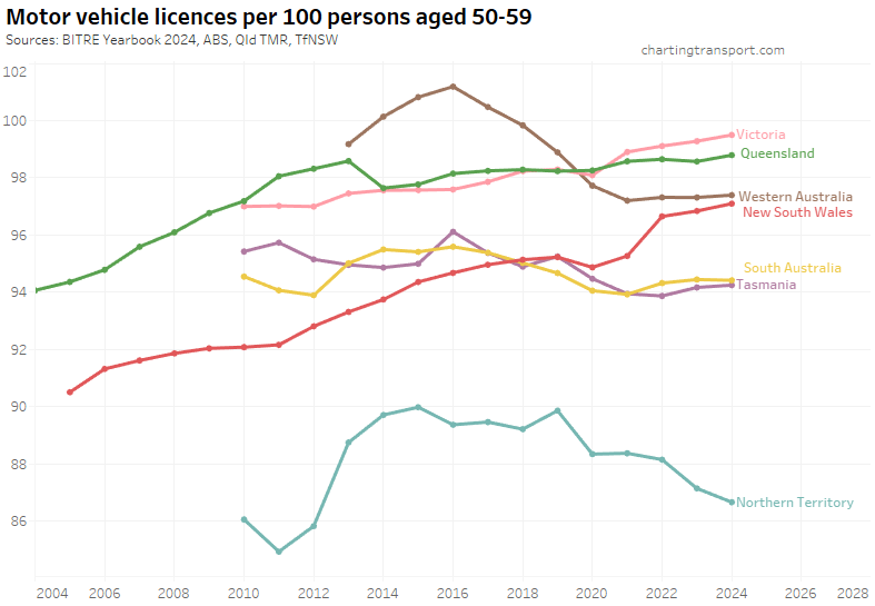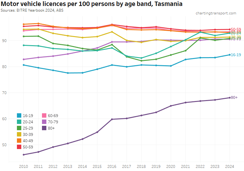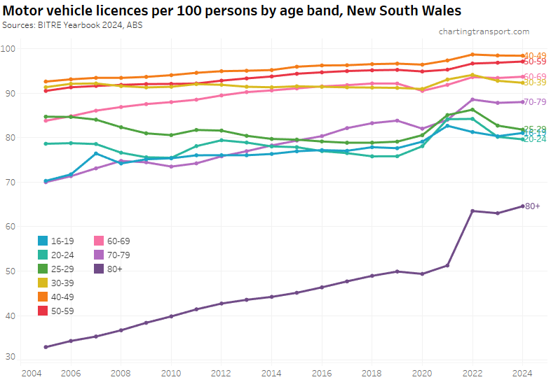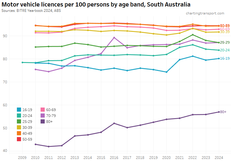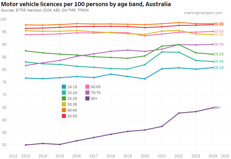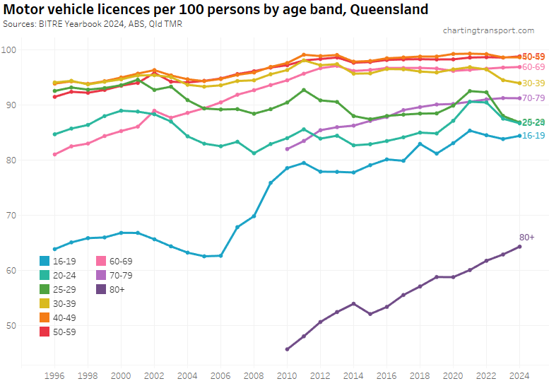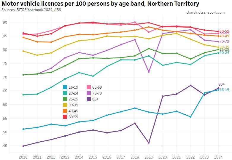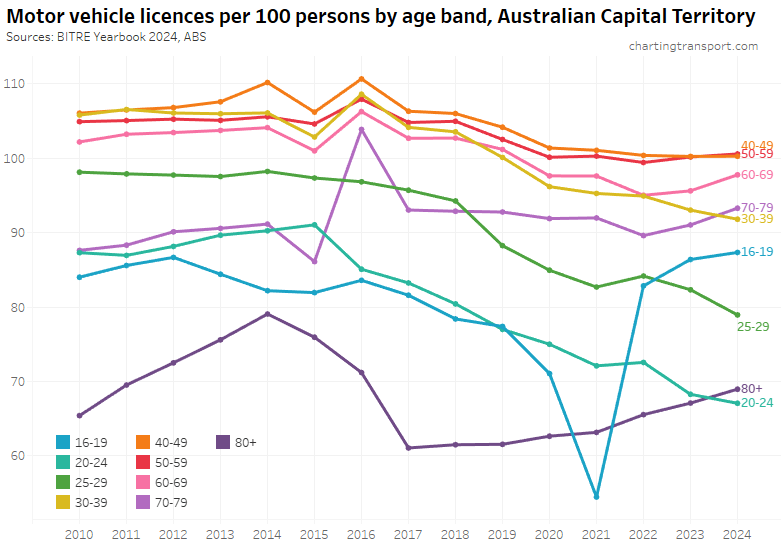 Here’s calculated licence ownership by age band for Australia (it includes suspect data from the ACT):