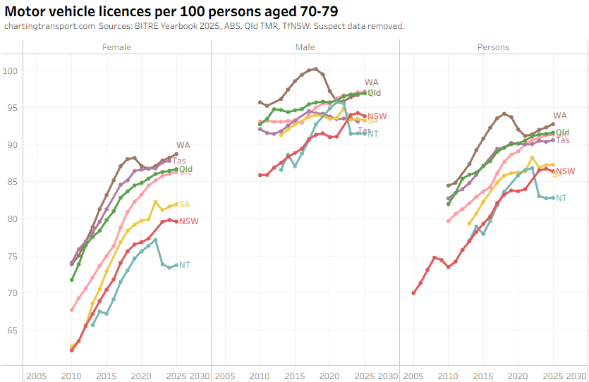 There’s a very clear trends in increasing licence ownership for those aged over 70 across Australia.