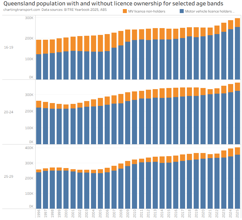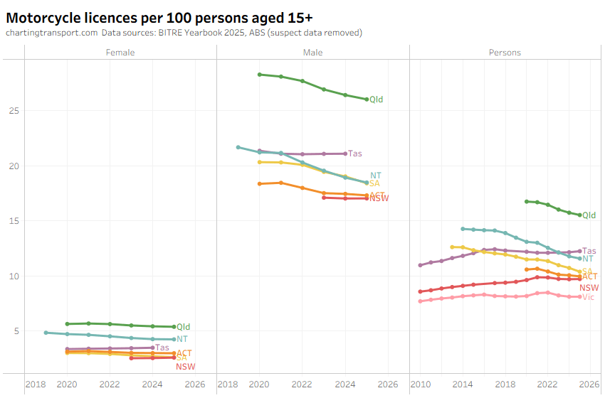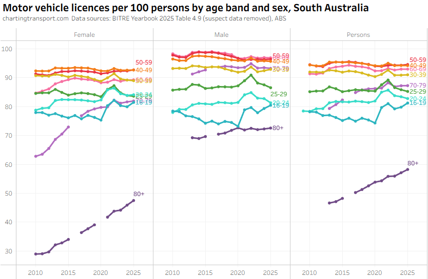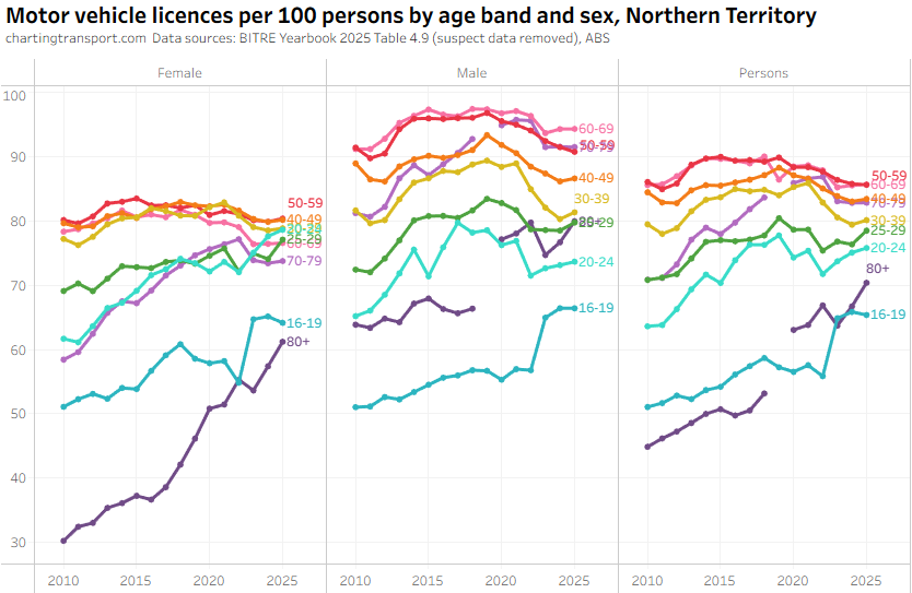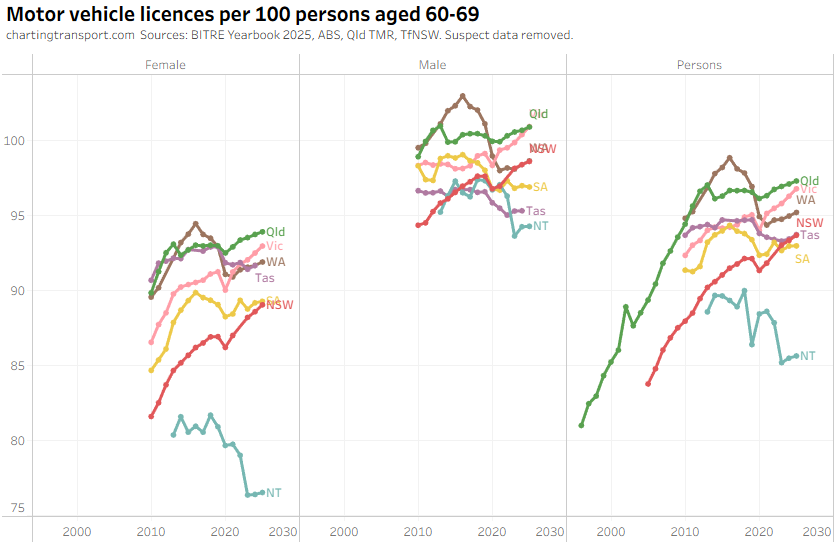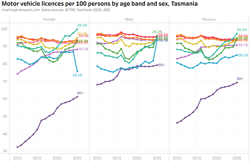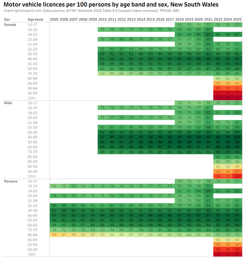 The ever increasing licencing rate for 20-24 females looks a bit suspect, and I’ve filtered out a lot of suspect 2025 data.
